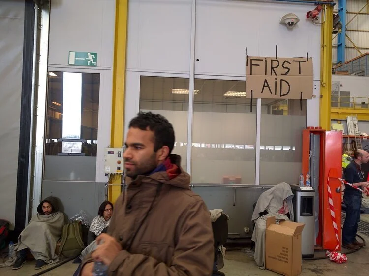 Finally, the airport brought shuttle busses for us to get inside. They were taking us to an aircraft hanger at the other end of the airport, and we didn't know it at the time, but we were going to be inside that hanger for the next eight hours. The hanger, while providing us some cover from the biting wind, did little to dispel the pervasive cold that seeped right into your bones. Airport staff started bringing out water and blankets little by little, until they could set up an emergency HQ. We were put inside a warm room for the first four hours, until the hanger began to fill up, and they needed that room for children and the elderly.